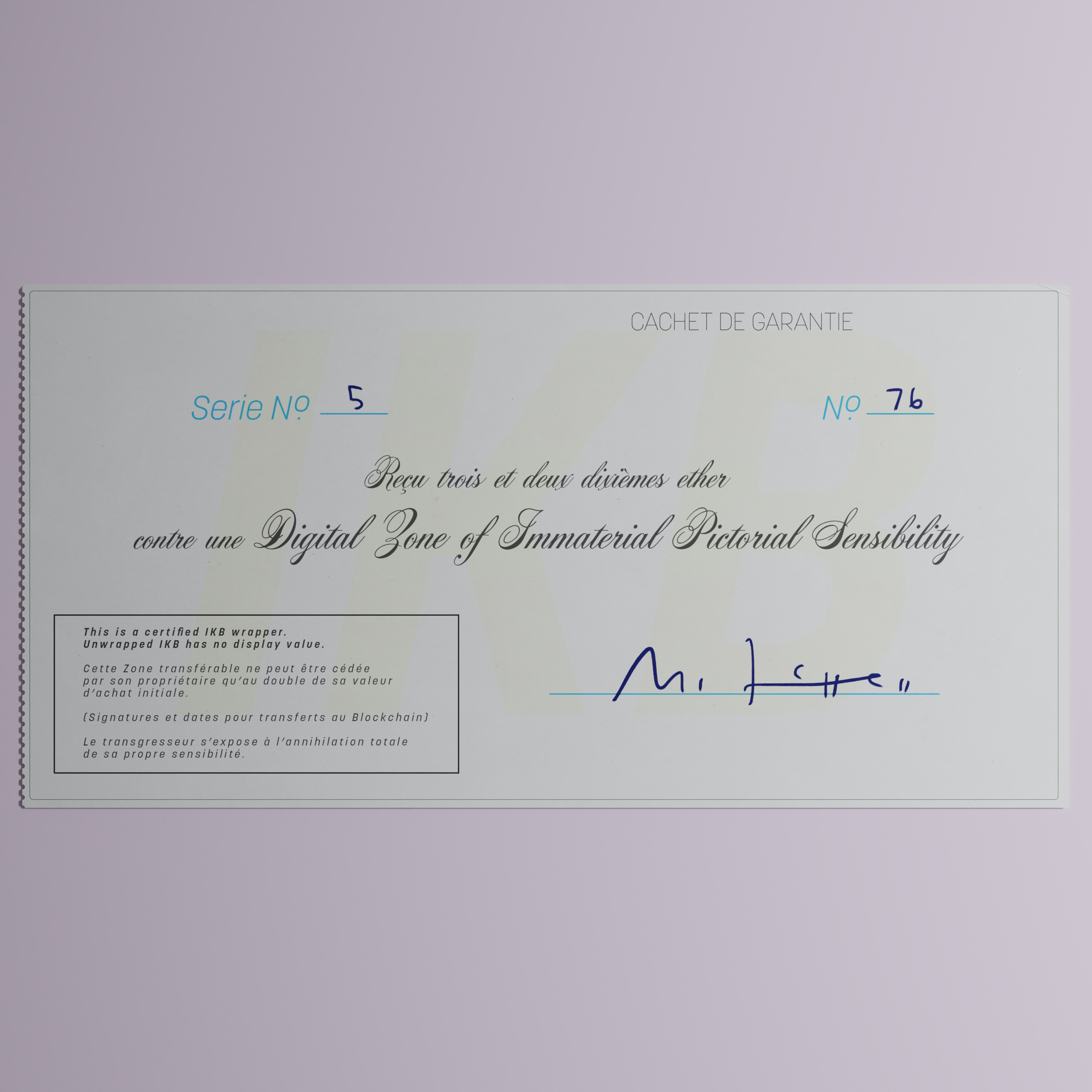 Digital Zone of Immaterial Pictorial Sensibility, Series 5, Edition 76. (Wrapped)